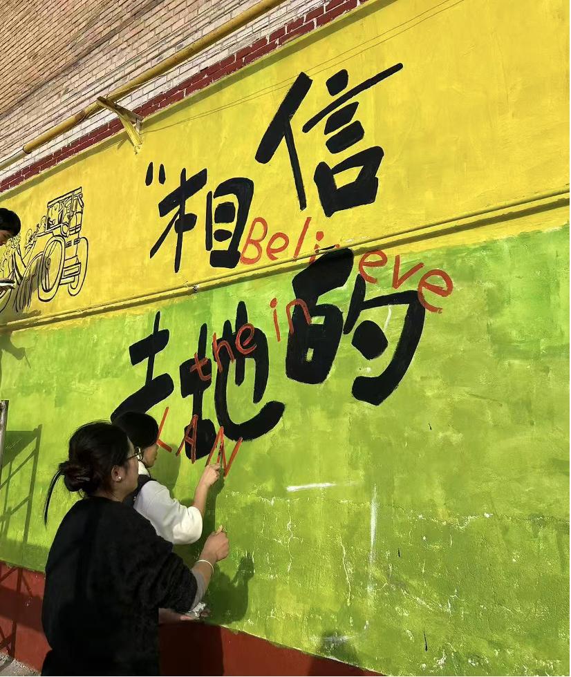 连日来,保定学院文学院书法学专业与美术学院学生组成志愿服务队,连续三周深入保定市朱庄开展村容村貌美化行动。同学们以墙面为画布,将传统文化元素、乡村振兴理念与地方人文特色相融合,精心绘制系列文化墙,既用笔墨勾勒乡土风情,又以艺术笔触传递文明新风。此次活动不仅为朱庄增添了靓丽风景线,更实现了专业实践与乡村文化建设的双向赋能,彰显了高校学子服务地方发展的责任担当。