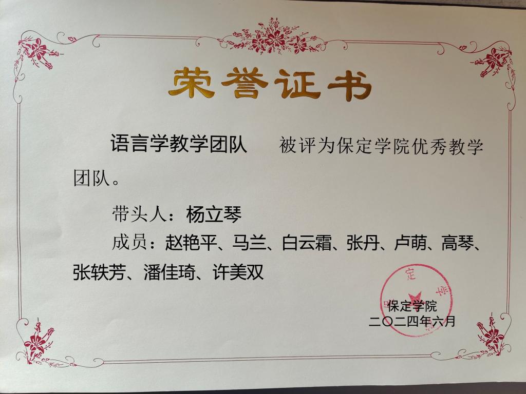 2024年6月,我院”语言教学团队”获校级优秀教学团队。