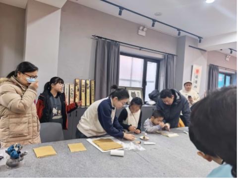 雅集以“传拓千年”为主线,将传统传拓技艺与农历新年文化深度融合。工作室师生不仅现场演示拓印技法,更指导市民亲手制作拓片。这些专为丙午马年创作的作品,融合了保定地方文化元素与吉祥寓意,使非遗技艺转化为可触可感的年味体验。活动现场气氛热烈,市民在墨香纸韵中感受着传拓的独特魅力与传承温度。